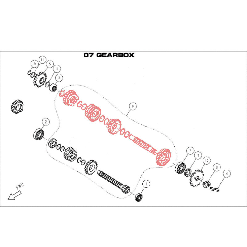 Secondary gearbox shaft for DAYTONA 190 FSM engine - 86919